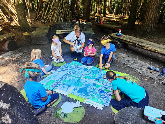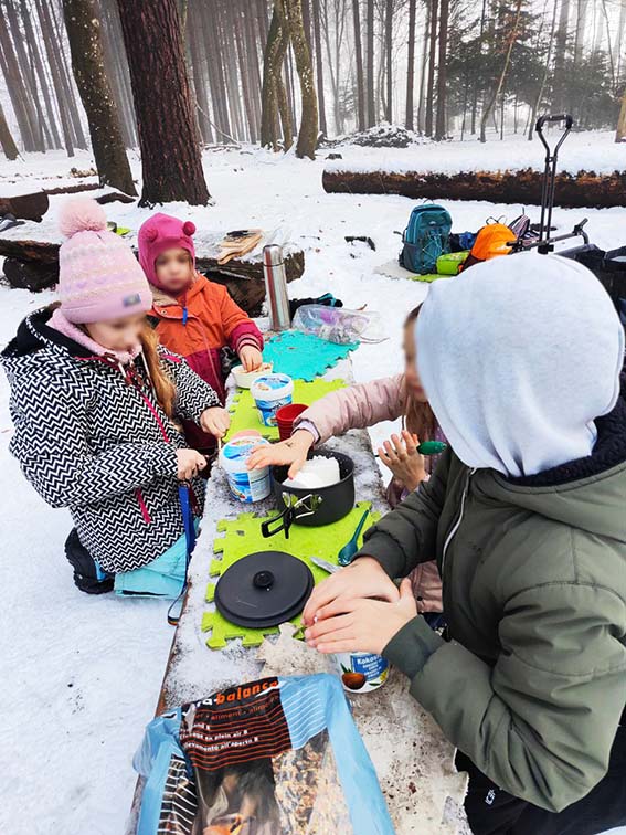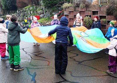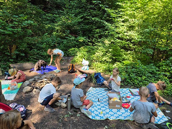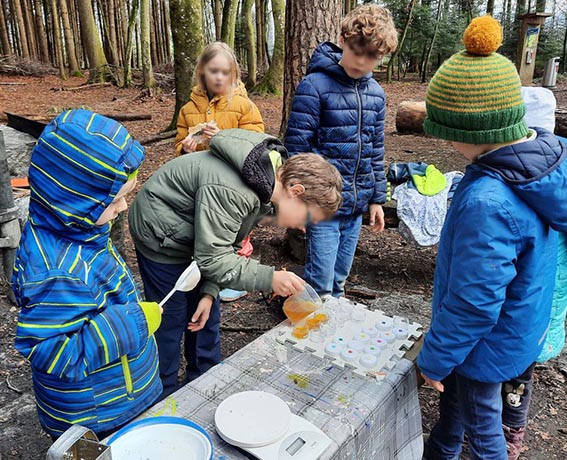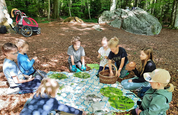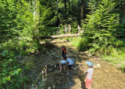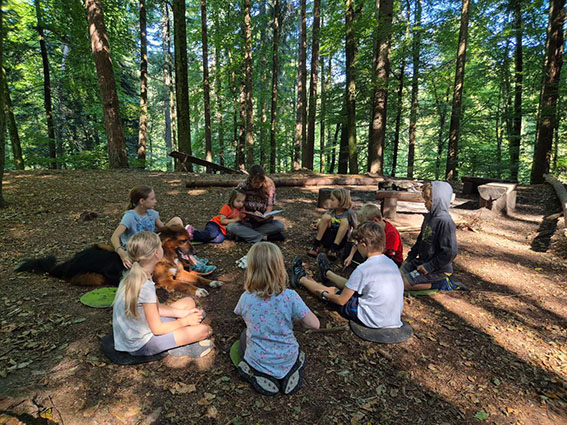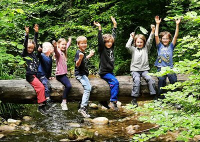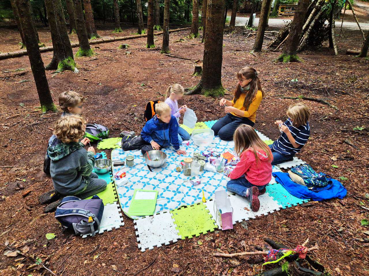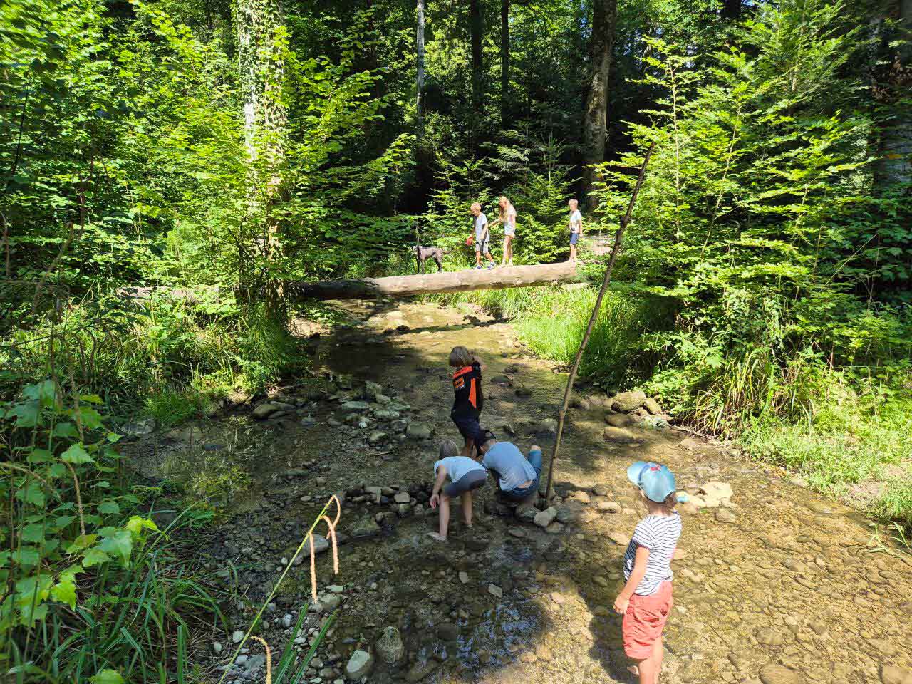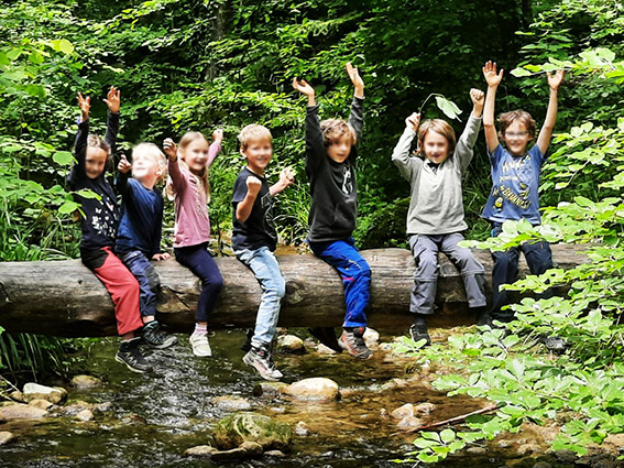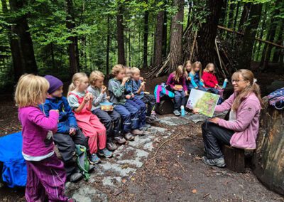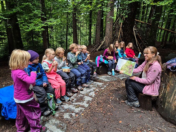 Wir verbringen die meiste Zeit im Wald zwischen Merenschwand und Benzenschwil, einem magischen und kraftvollen Ort, der nicht nur ein Paradies für die Seele, sondern auch für alle Kinderherzen ist. Für mich ist dies die ideale Lernumgebung. Der märchenhafte Weg ermöglicht es den Kindern, die vier Elemente – Luft, Wasser, Erde und Feuer – auf eindrucksvolle Weise zu erleben.